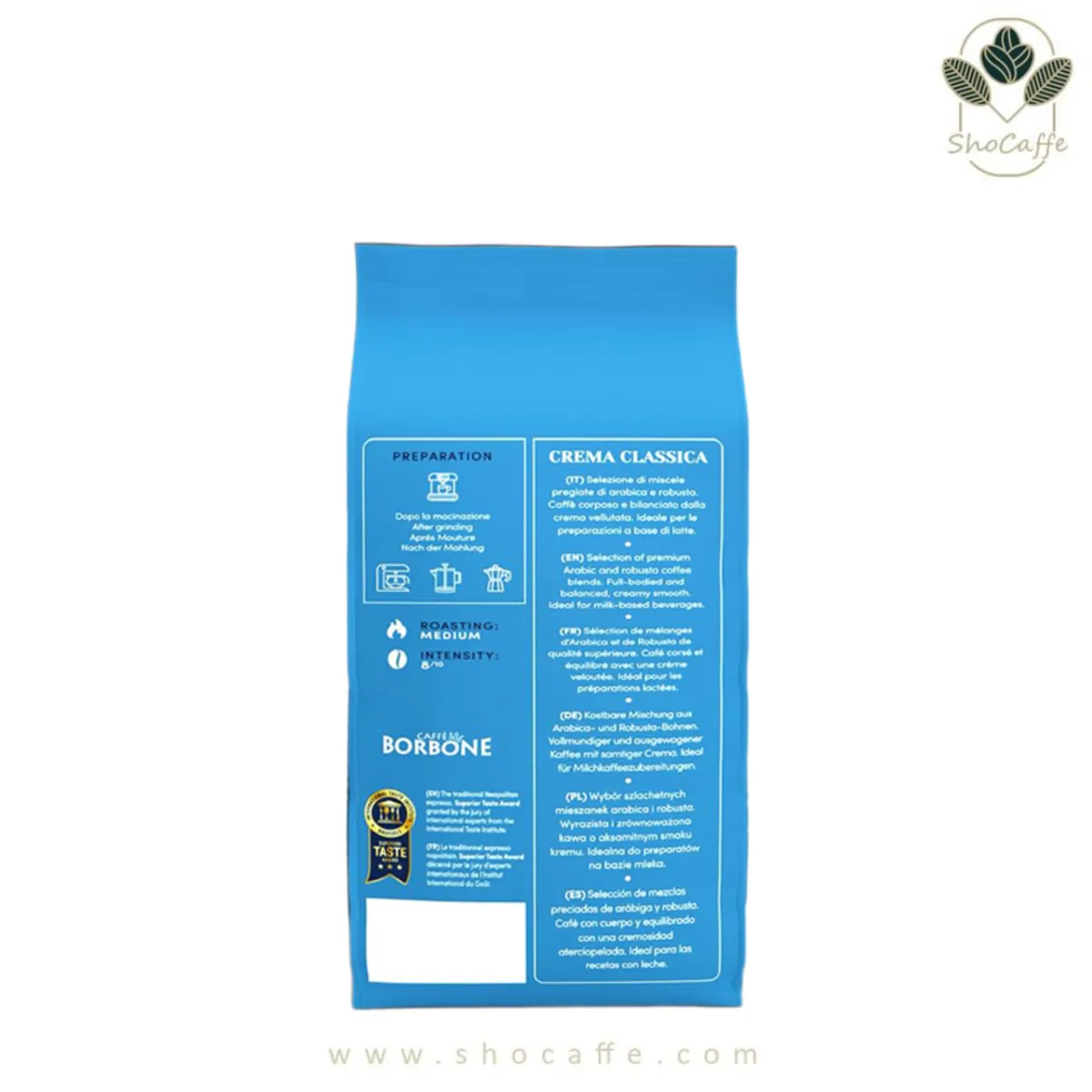 دانه قهوه کرما کلاسیک برند بوربن، این قهوه از یک برند ایتالیایی میباشد که ترکیبی از 50 درصد دانه عربیکا و 50 درصد دانه ربوستا تولید شده است.
