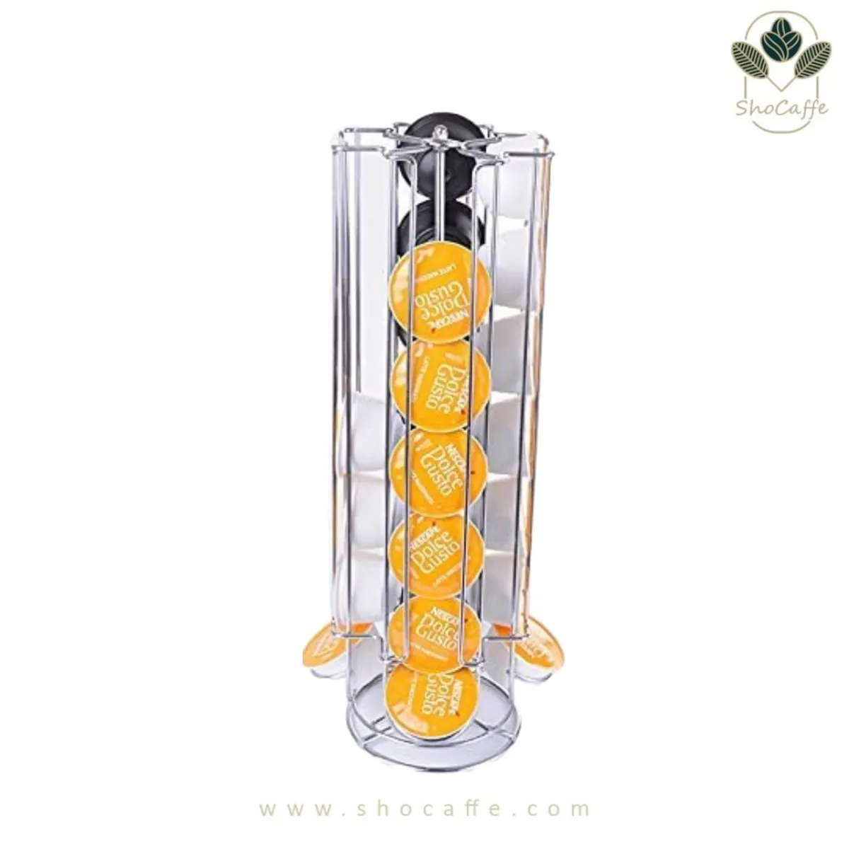 این استند با طراحی شیک به شما امکان می دهد تا 28 کپسول دولچه گوستو را در 4 ردیف متمایز نگه دارید . این استند دارای چرخش 360درجه برای انتخاب آسان کپسول می باشد. جنس بدنه آن استیل ضدزنگ مرغوب با روکش کرومی است ک هباعث شده استندی سبک اما محکم و بادوام برای استفاده طولانی مدت شما عزیزان باشد.