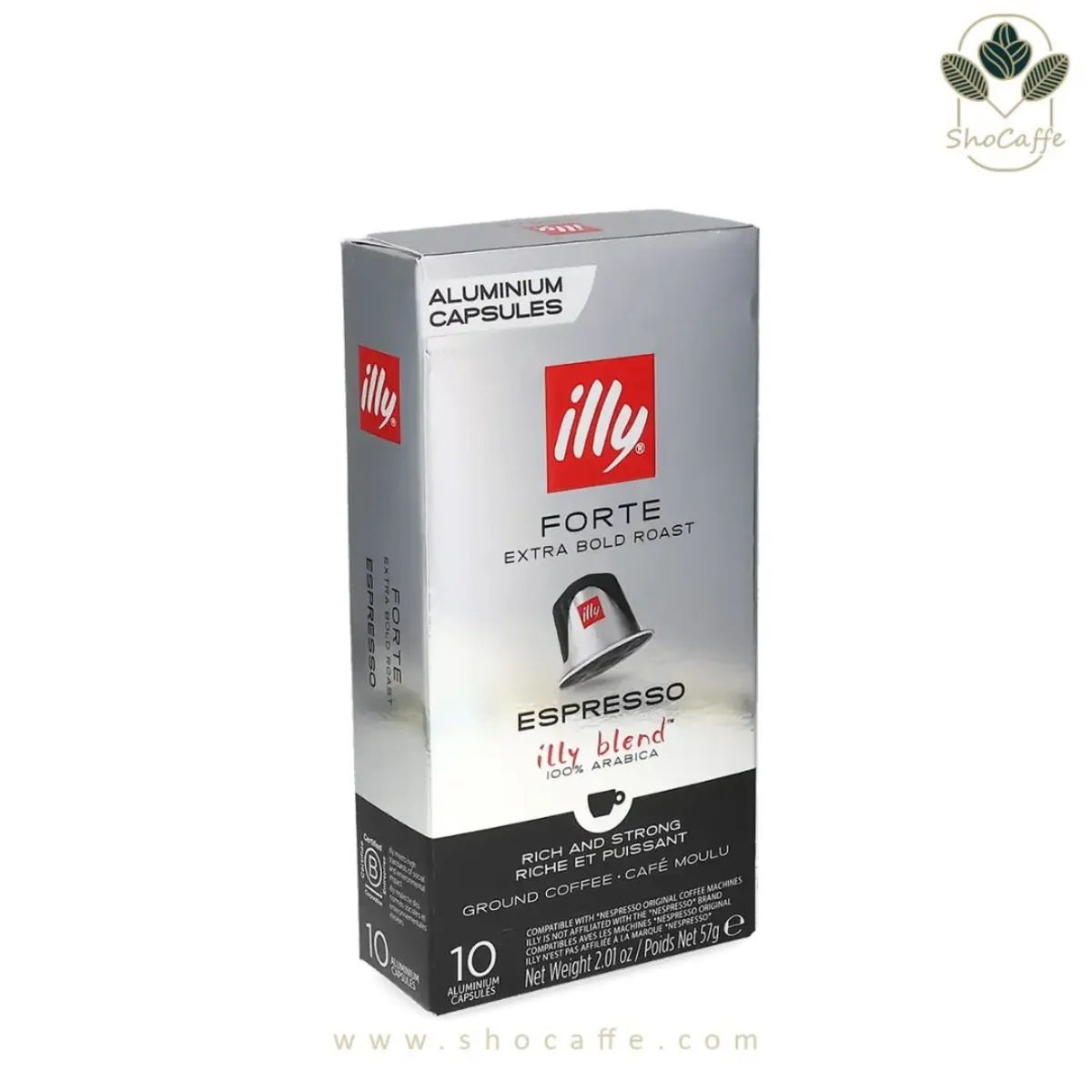 این قهوهی قوی و خوشمزه از ایلی (illy) در بستهای شامل 10 عدد کپسول قهوه آلومینیومی که با اسپرسوساز کپسولی نسپرسو سازگار است، موجود است. با این کپسول ها میتوانید تنها با فشار یک دکمه، قهوهای با کیفیت بالا را به سرعت و به راحتی نوش جان کنید.