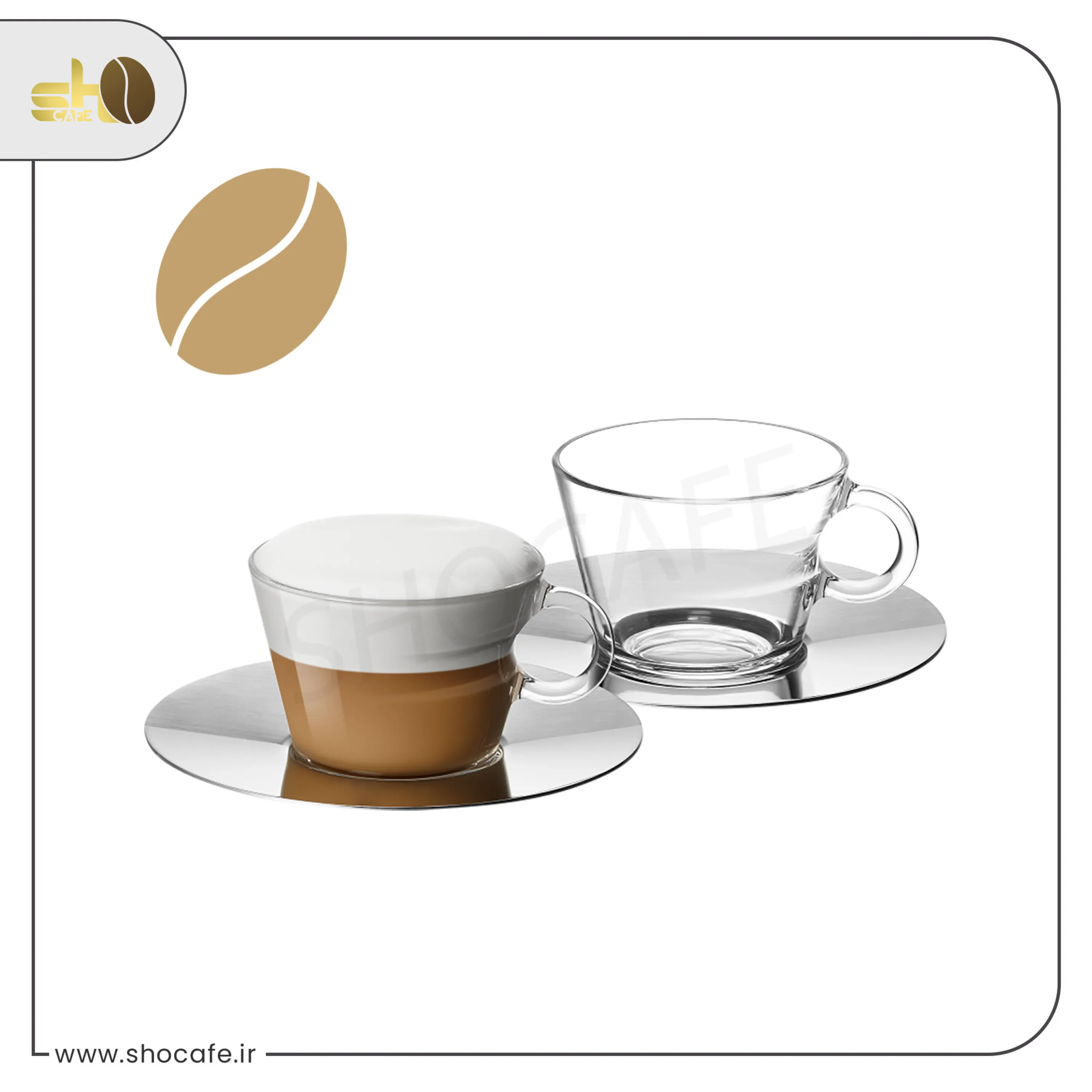 فنجان ویو کاپوچینو نسپرسو از دو عدد فنجان شیشه سکوریت و دو عدد نعلبکی از جنس استیل ضد زنگ با روکش براق تشکیل شده است.