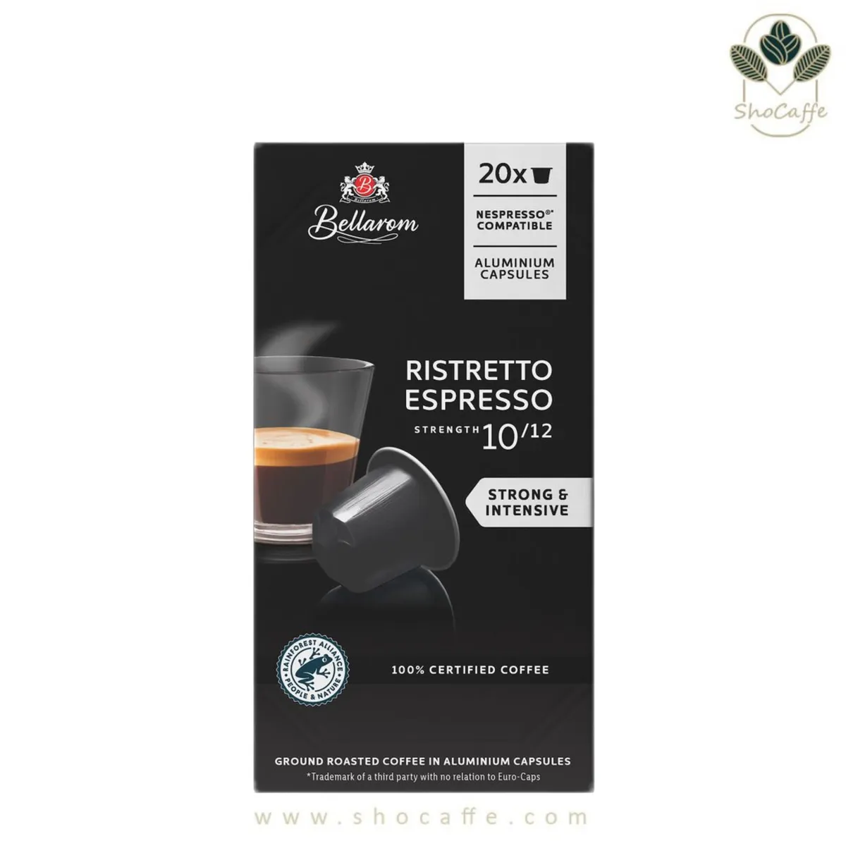 کپسولهای قهوه نسپرسو برند بلاروم مدل اسپرسو ریستریتو، یک قهوه قوی تلخ و غلیظ با کرمای زیاد برای کسانی که طعم تند و پرقدرت اسپرسو را دوست دارند زیرا بسیار کافئین بالایی دارد.