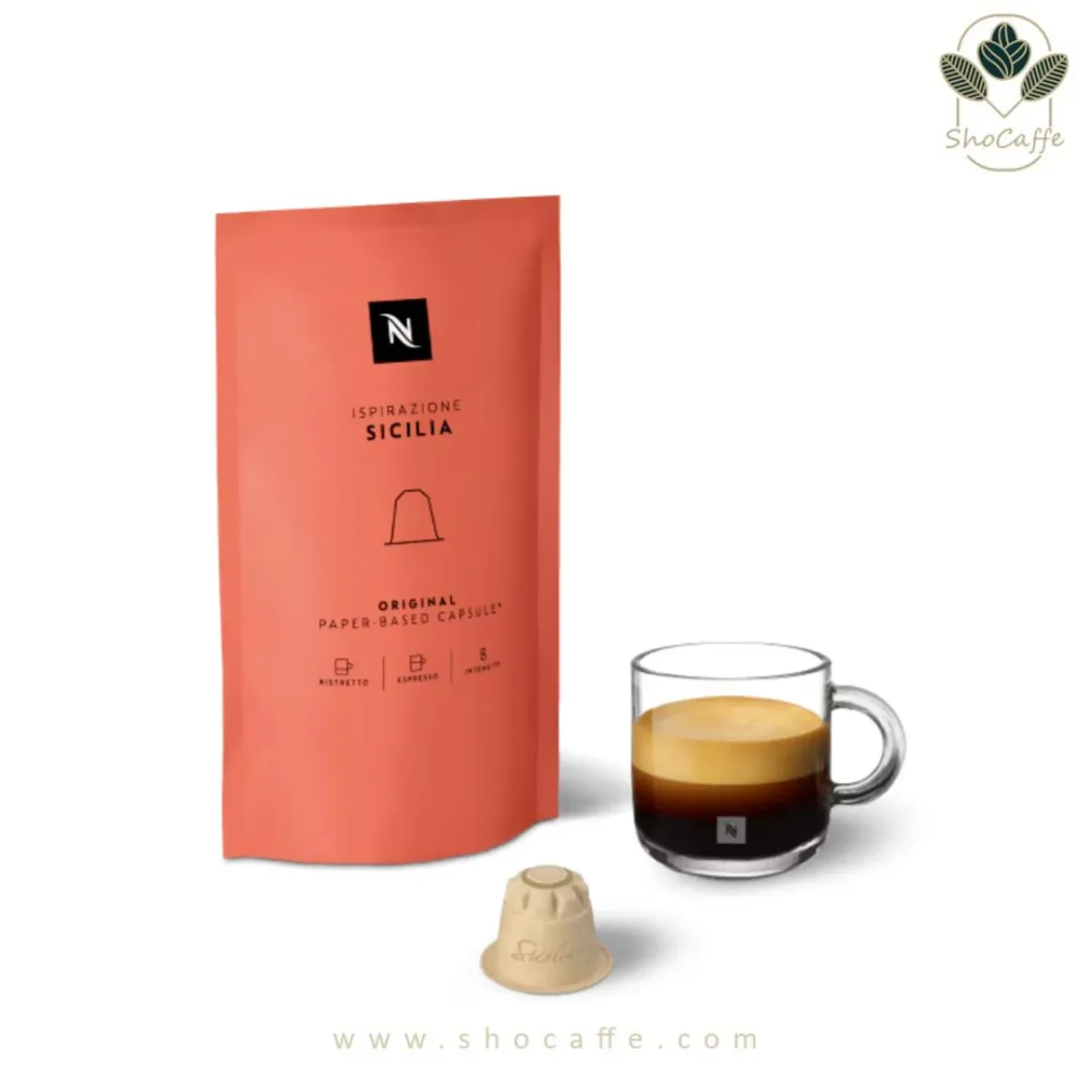 بسته کپسول قهوه نسپرسو مدل Ispirazione Sicilia حاوی 10عدد کپسول قهوه آسیاب شده و تفت داده شده میباشد.این قهوه ترکیبی از عربیکای برزیل و کلمبیا است.با درجه تلخی بالا و رست تیره، کپسول قهوه سیسیلیا طعمی دلنشین و ترکیبی عالی از عطرها را برای شما به ارمغان می آورد. دانه های عربیکا به کار رفته در کپسول قهوه سیسیلیا با خاستگاه برزیل و کلمبیا به روش تقسیم رست، یادآور شکلات تلخ و غلات است.