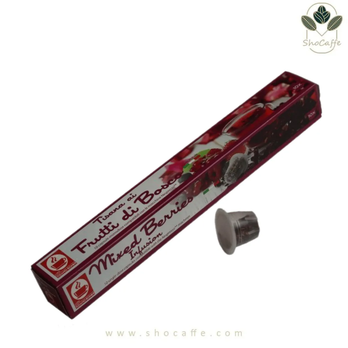 دمنوش کپسولی میکس بری مناسب برای دستگاه نسپرسو اورجینال می باشد که با هرکپسول شما می توانید یک فنجان دمنوش خوش طعم و منحصر به فرد برای خود و خانواده تان تهیه و از لحظات به یادماندنی درکنار آن ها لذت ببرید. هر بسته دارای 10 عدد کپسول با وزن 25 گرم می باشد که هر کپسول حاوی شاه توت قرمز، زغال اخته، زنجبیل، سنجد، دارچین، سیب، توت فرنگی، بلوبری است.